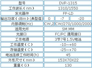 DVP-1315手持式光源采用激光器作为发光器件,具有输出功率大、输出功率和波长稳定性好等优点,同时其内置的调制功能可以便于和其他仪表配合进行频率识别或光纤识别。